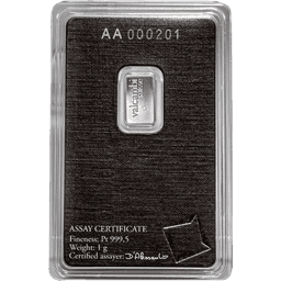 Een 1 gram platina baar is een toegankelijke manier om fysiek platina te kopen zonder grote investering. Bij Goudzaken kies je voor een baar van minimaal 99,95 % zuiver platina, afkomstig van erkende producenten. Dankzij de margeregeling betaal je een scherpe prijs en profiteer je van duidelijke voorwaarden bij aankoop in Nederland.
