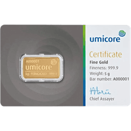 Elke 5 gram goudbaar is vervaardigd uit zuiver goud (99,99%) v...